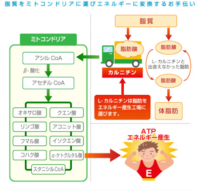 その長鎖脂肪酸を燃やすときに、ビタミンCとともに、カルニチンが必須なのです。
