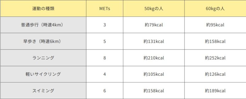 例えば、普通の歩行速度でウォーキングをした場合のMETsは3です。