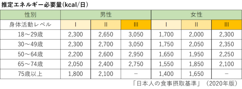 \一日の必要カロリー量の目安/