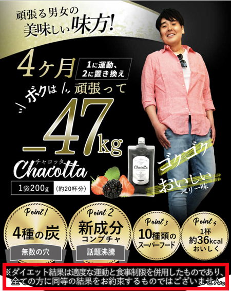 サプリメントのテレビショッピングの画面にも小さく出てますよ