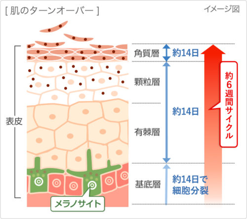 「ターンオーバー」って、肌の細胞が一定の周期で生まれ変わる仕組みのこと。