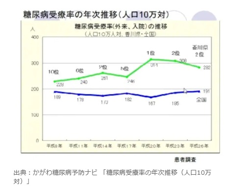 それが直接結びつくのかどうかは謎ですけど、糖尿病患者数が全国ワースト1~2位を取ることも多いというデータがあります。