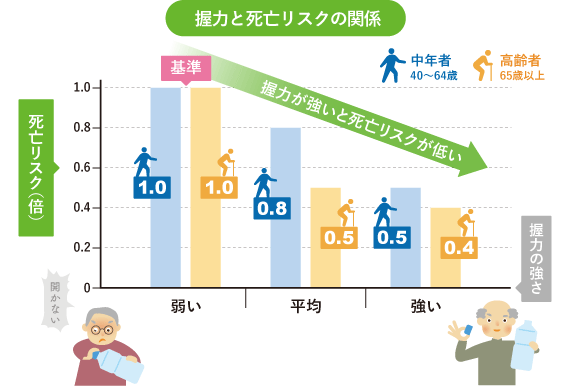 国立長寿医療研究センターによると、下半身の筋力が弱い高齢者は、転倒・骨折のリスクが2倍以上に跳ね上がるとのこと。
